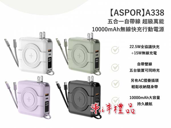 五合一自帶線超級萬能10000mAh無線快充行動電源